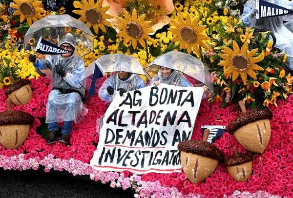 Pasadena Star News • 1st January 2026 Rose Parade 2026: Float riders briefly hold sign seeking fire probe